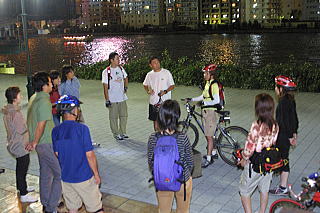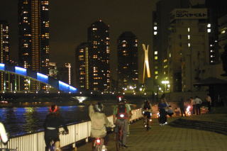 ![]() 8月・・・東京の熱帯夜。仕事帰りに東京の水辺を気持ちよく走って、最後は冷えたビールでカンパイする!そんな熱い夏を逆手にとったような、ストレス発散的ツアーを企画してみました!ところが、ところが・・・今年の夏はどこへ行ってしまったんだ〜!!!雨でツアーが延期になってしまったりして、企画倒れか!?と心配しましたが、なんとかツアーは無事催行。自転車で走り抜ける夜の東京の表と裏、光と影、今と昔・・・普段は感じることのない江戸、TOKIOを感じていただけましたでしょうか・・・。 |