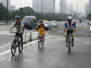 ![]() 本日は残念ながらパレスサイクリングロードは朝の雨で中止。でも人通りが少ないのでお堀沿いの道も快適! |