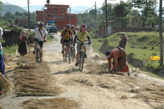 3度目となったネパールのMTBツアー。ボクが始めて彼の地を訪れたのは1987年。アメリカ在住の間以外は、1年に1〜2回行っているので、訪問回数は相当なもの。それでも毎回新鮮な発見があるし、現地の人たちとの親交はますます深まるしということで、ボクにとっては、通い続けるとか大げさなものではなく、普通に行き続けることになりそうです!今回、最も心配だったのは現地情勢。毎日のようにデモが起こり、ためにそれが投石などに発展しているとか。出発前には現地のMTBガイド、旅行代理店から生の声を聞き、また現地ニュースなどにも目を通し、また滞在中も情報収集を怠らず、デモが起こりそうなエリアには近づかないようにしていました。そんなワケで、訪れたのは相変わらずのネパール。道路にはサリーやパンジャビドレスをまとった女性や、なぜか手をつないで歩く男(大人のです!)、自転車、モーターサイクル、リキシャ(自転車タクシー)、自転車、そして牛などがごったがえし、またちょっと郊外に出ると、麦畑の向こうにヒマラヤが広がるのどかな世界でした。 |