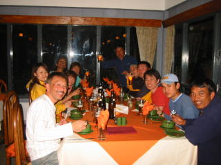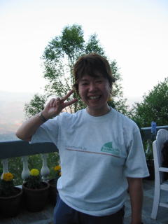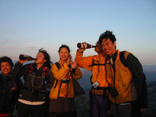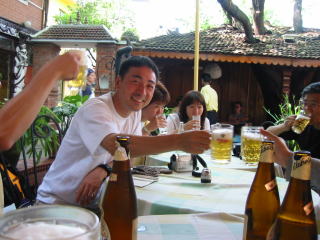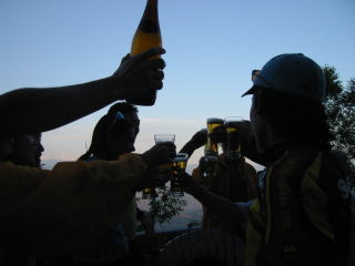 そして上り詰めたところにあるホテルに到着。 早速みんなでカンパ〜イ! |