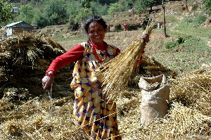 1泊2日のMTBツアーに出発。交通量の多い市街はクルマで移動。ヒンドゥー教の寺院・パシュパティナートの裏から、MTB走行が始まります。 ![]() ちょうど麦が穂を垂れる美しい時期でした |