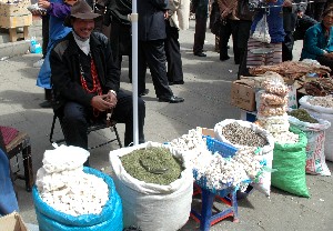 先行してチベット入りしていた丹羽、行動食の買出しに、バザールへと繰り出しました。ヤクの干し肉、チベットチーズなどをゲット! |