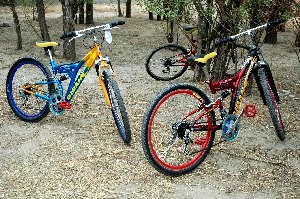 全14人中、5人がマイバイクを持ち込み、9人は現地のレンタルを利用。中国製のMTBルック車ですが・・・ ん? シネノ? |