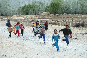 村を走ると、このようにスーパーアイドルになって、追っかけつきです! タシデレ〜! |
