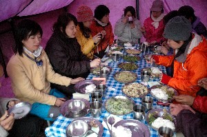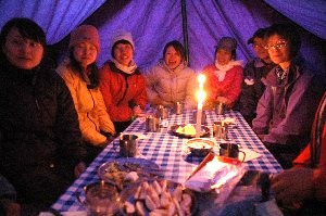 キャンプではダイニングテントもあって、 快適&極楽&あったかかった! |
