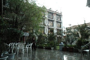 ラサで泊まったキチュホテル。中庭が広くて、気持ちいいんです |