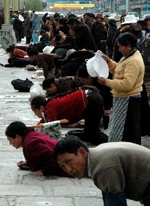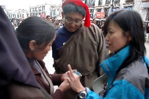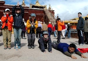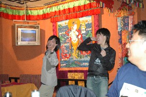 ラサ最後の夜ということで、街に繰り出してみました。タラ(女性の仏陀)の前で踊るその振り付けは、もしや・・・ |