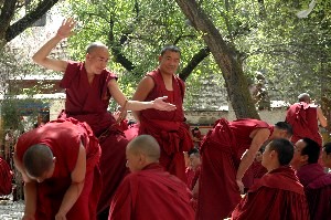 河口慧海がその昔チベット仏教を学んだというセラ寺では、お坊さんたちが問答する姿を見ました。 |