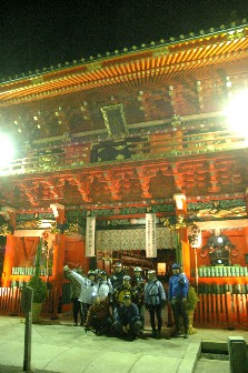 今年もまた警察管に「ナニをしているのですか?」と聞かれ、「サ、サイクリングです」と答え、苦笑されるという、やまアドらしい展開で2006年が始まりました。ライトアップされた都心の神社仏閣はとても荘厳。ほとんど人に出会うこととなく、私たちで独占状態でした。交通安全、商売繁盛に家内安全、縁結びに、IT関係の祈願成就に、禁酒断酒のご利益まであったし、浅草七福神も詣でたので今年はカンペキ! ということで 今年もどうぞよろしくお願いします! |