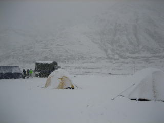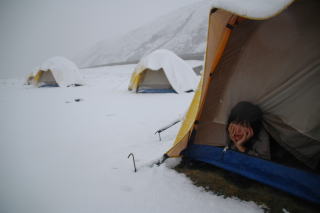 いきなり停滞???四駆自動車でないと峠を越えられないという判断で、午前中は様子をみることにしました。 |