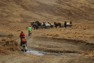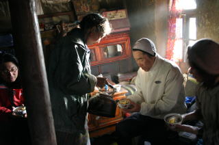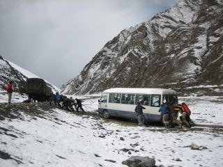 車が動かなければ、みんなでマイクロバス押す(引く)し、道が壊れていたら修復して走る。みんなでお手伝い。チベット人たちと一緒にいると逞しくなります。 |