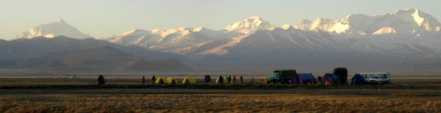 左に見えるのがエベレスト、右側がチョー・ユー。世界最高峰の山々を眺めることのできる世界最高のキャンプ地! |