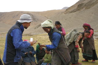 農作業へ向うチベタンたちに「タシレデ〜!」 |