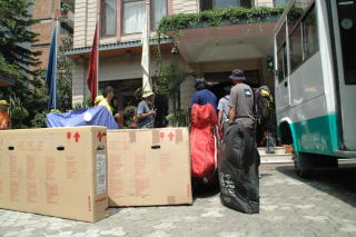 最終日、パッキングの朝。機内預け荷物を少しでも軽くするのに皆必死!