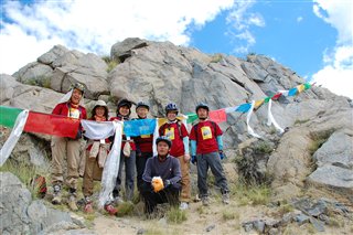 途中、小さな峠に、チベットのお祈りの布・タルチョをかけ、 祈りを捧げます |