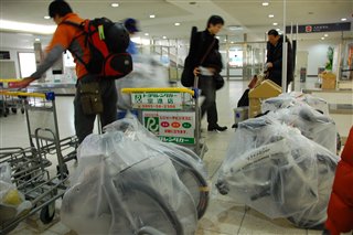羽田空港に集合し(大阪からの人もいたけど)、鹿児島空港へ。 空港を出たところで自転車を組み立てる |