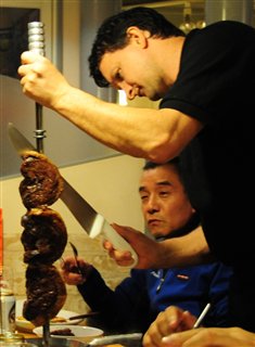 テーブルにお肉を持ったお兄さんが回ってきて お皿にお肉をおいていきます。 |