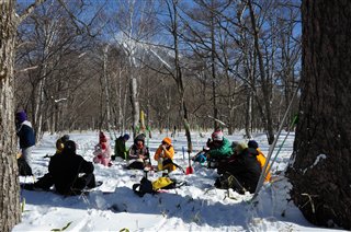 まずは冬の奥日光遊び歴二十数年の ニワのレクチャーよりはじまりはじまり。 |