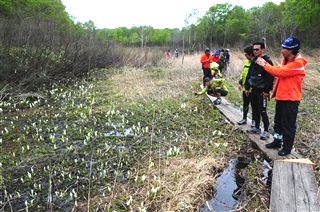 湿原には水芭蕉の群落 |