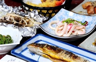 下って、田園を走って、宿に到着。 温泉でホッコリ&待ちに待った夕食 |