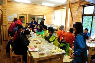 ランチは廃校跡の施設で前夜に作ったサンドイッチ |