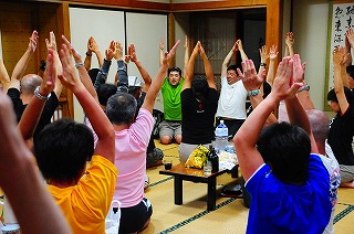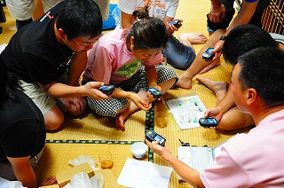 ![]() 夜のミーティング後は、GPSの使用方法解説 |