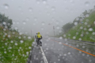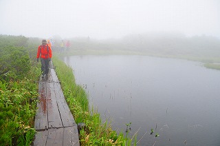![]() 雨にもめげず、元気に上ります。用意したゴアテックスの レインウエアが威力を発揮 |