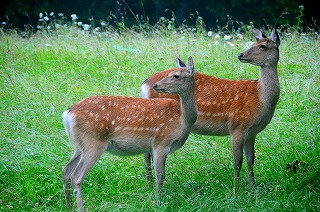 ![]() シカの親子もごあいさつ。この後、とってもワイルドな温泉にも行ったけれど、 写真がない・・・。 |
