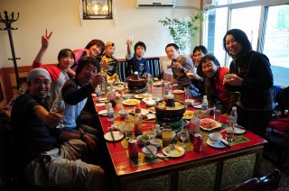 ![]() 夕食はチベットの宮廷料理。 明日からのヒマラヤ横断に備えて、キアイ十分! |