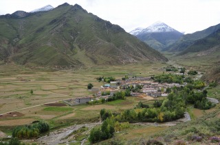![]() 一旦下って、再び農村へ。 近頃はハウス栽培でいろいろな野菜が作られている。 かつてのチベットにはなかったこと。 |