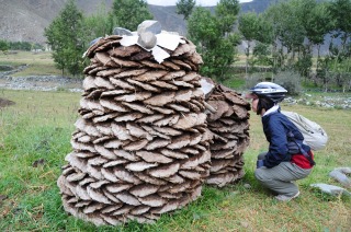 ![]() ウ・ン・コ、です! これが燃料。 草食動物のウンコは臭くない! 牛や羊などのウンコを拾い集めて、麦の茎と合わせて練って乾かす。 何百年も前から、こうしていたんだろうなぁ。 いつかは枯渇する石油を「あと何年?」を恐々と使う暮らしからは 考えさせられることが多い。 |