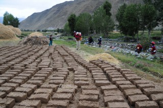 ![]() チベットの家の多くは日干し煉瓦で造られている。 チベットの暮らしの材料は、ほとんどご近所産。 日干し煉瓦は季節によっては湿気を吸ったり、保温効果があったりと、 屋内の気温や湿度を、なるべく一定に保つとか。 最近は石造りの家も増えてきたが、それで体調を壊すこともあるらしい。 ちなみに、ペルーのインカの人も、同じような日干し煉瓦で暮らし、 同じようなことをいっていた。 |