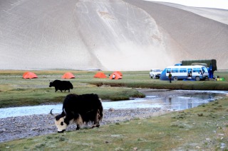 ![]() 朝、目覚めるとテントの周りにはヤクがいっぱい! |