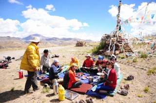 ![]() チベット高原で「大の字」になって休憩。 空が青〜〜〜〜い! |