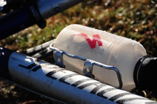 ![]() 朝、ボトルの水は凍っていた。 |