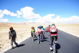 ![]() チベタンたちとハイタッチを交わしながら進んでいく。 |