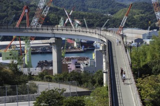 ![]() 自転車専用の連絡橋を渡り、四国に上陸。 今治駅でゴール、でした。 |