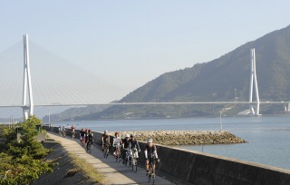 ![]() 昨日渡った多々羅大橋を背に、次の伯方島へ向かう。 |