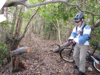 前日に10月の台風で荒れた道を道普請してくださったOさん。 本当に楽しいコースでした!ありがとうございました! |