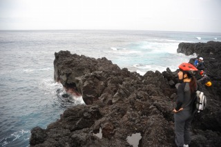 ![]() 溶岩流が海に流れ込んだポイント。 波の音がスゴイ! |