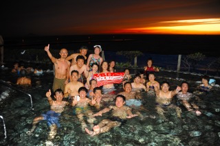 ![]() そして温泉にドボ〜ン! 夕日が海にジュッ! |