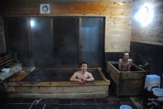 ![]() 宿に着いて、温泉で温もると、夕食前に早速第一回! |