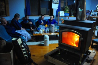 ![]() しっかり食べた(飲んだ)後は、暖炉の周りで盛り上がりました。 |