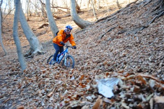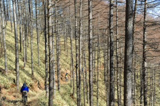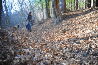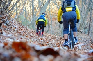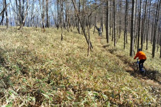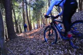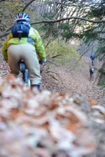 マウンテンバイクでシングルトラックへ。