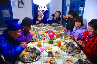 ![]() 乾燥した一帯はソバの産地。 現地流の食べ方を楽しみました。 |
