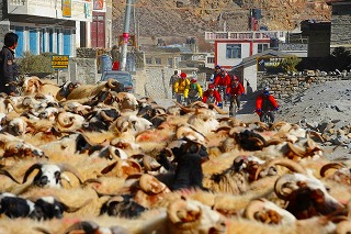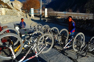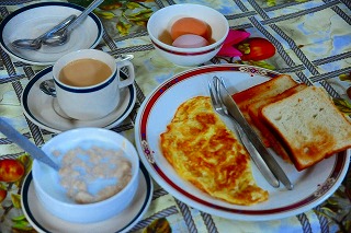 ![]() 朝食。左のボウルはツァンパというチベットの伝統食。 ここはネパールでありながら、チベットなのだ。 チベット語も普通に通じる。 |