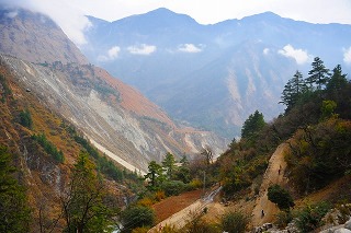 ![]() ツクチェ村は、チベット-ネパールの交易で栄えた村。 そのために驚くほど家がデカイ。 チベットからは羊やヤギに岩塩を積んで運ばれた。 通っているのは、ヒマラヤ版の「塩の道」。 |