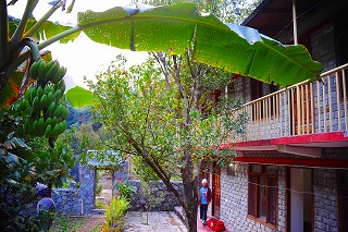 ![]() 部屋の前にはバナナが実っている。 亜熱帯がもうすぐそこなのだ。 |
