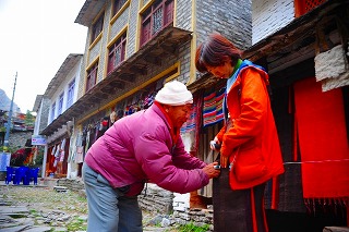![]() ボクはこの村と、丘の上の放牧場に1ヶ月ほど滞在して、 ヤクについて調べたことがある。 そのときにお世話になった人と再開。 |