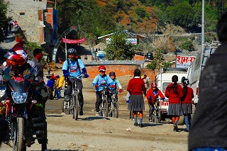 ![]() 学校に行く子供たちと抜きつ抜かれつ(彼らは徒歩!) そして学校の始業時間。 |